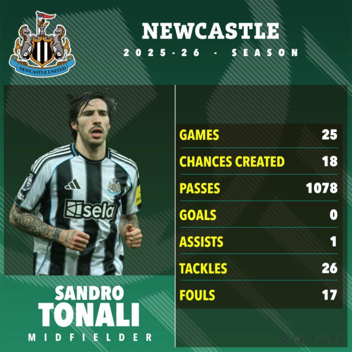 他是这批人里年龄最大、经验最丰富的球员,在2023年加盟纽卡斯尔之前,已经在AC米兰证明过自己。与卡塞米罗相比,托纳利在推进方式上更加多样,尤其擅长通过带球完成向前输送,但在进攻三区的威胁性上,明显不如巴西人。